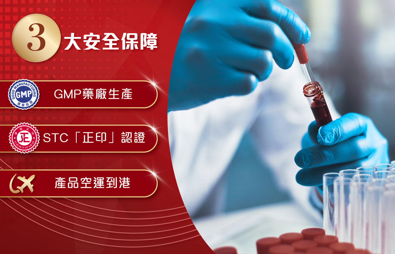 卡士蘭產品由GMP藥廠生產,嚴格把控品質,確保卓越安全;全線產品經空運直達香港,免受長時間溫差影響。卡士蘭產品經香港STC「正印」認證,符合香港食品安全標準。