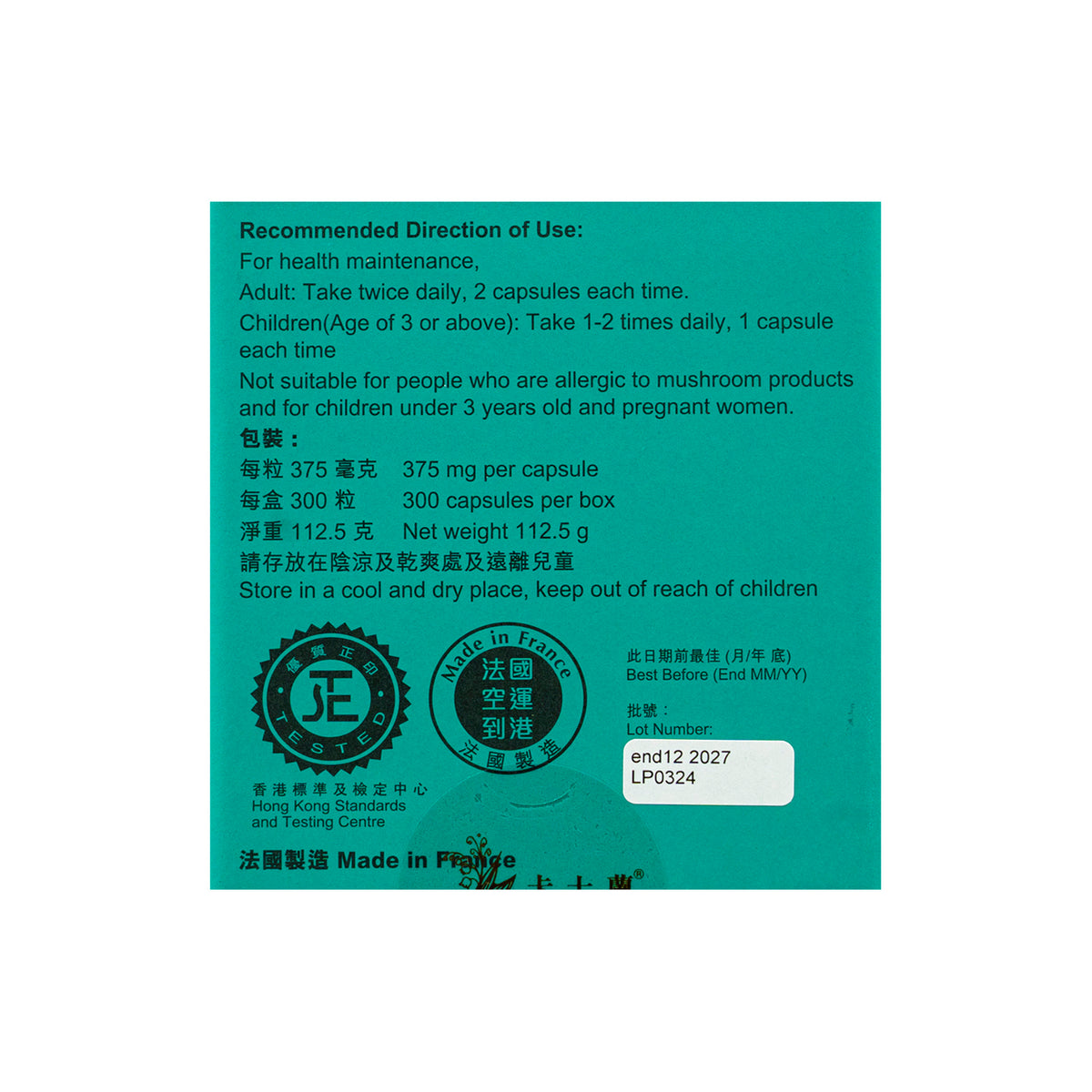 300粒, 375毫克/粒