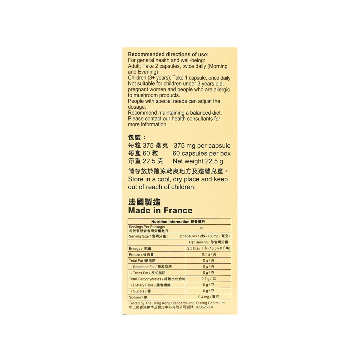 成人:早晚各1次,每次2粒。 儿童(3岁或以上):每天1-2粒,每次1粒。 *注意:对菇菌产品敏感人士及3岁以下儿童不宜服用。 *有需要人士可调节服用量及服用时间。需配合均衡饮食,详情请向卡士兰健康顾问查询。